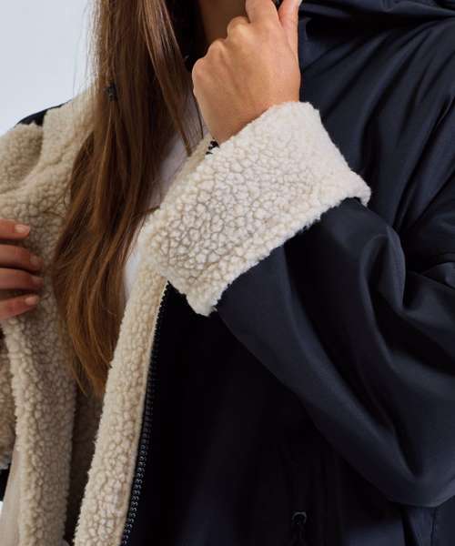 Unisex. Oversized. Full-length two-way plastic zip with easy pull toggles. Chin guard. Oversized fit. Side vents. Adjustable cuffs with hook and loop fastening. Side zip pockets. Inside pocket with zip on the left side. Inside patch pocket on the right side. 3-panelled hood. Loop on the centre back of the jacket for hanging the robe. Dropped back hemline. (5000/5000 waterproof and windproof). Embroidery access to the back and chest area can be accessed through here. Waterproof taped seamed outer layer. Sherpa fleece interior. Rebrandable stuff sack carry bag with double drawstring straps. CE Class 1 Certified.